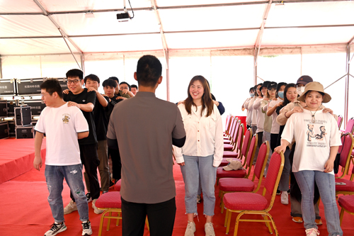教官的一声问候拉开了活动的序幕,团员们在教官指挥下有序地开展热身运动,并通过“转圈圈”游戏快速组建成四支队伍。