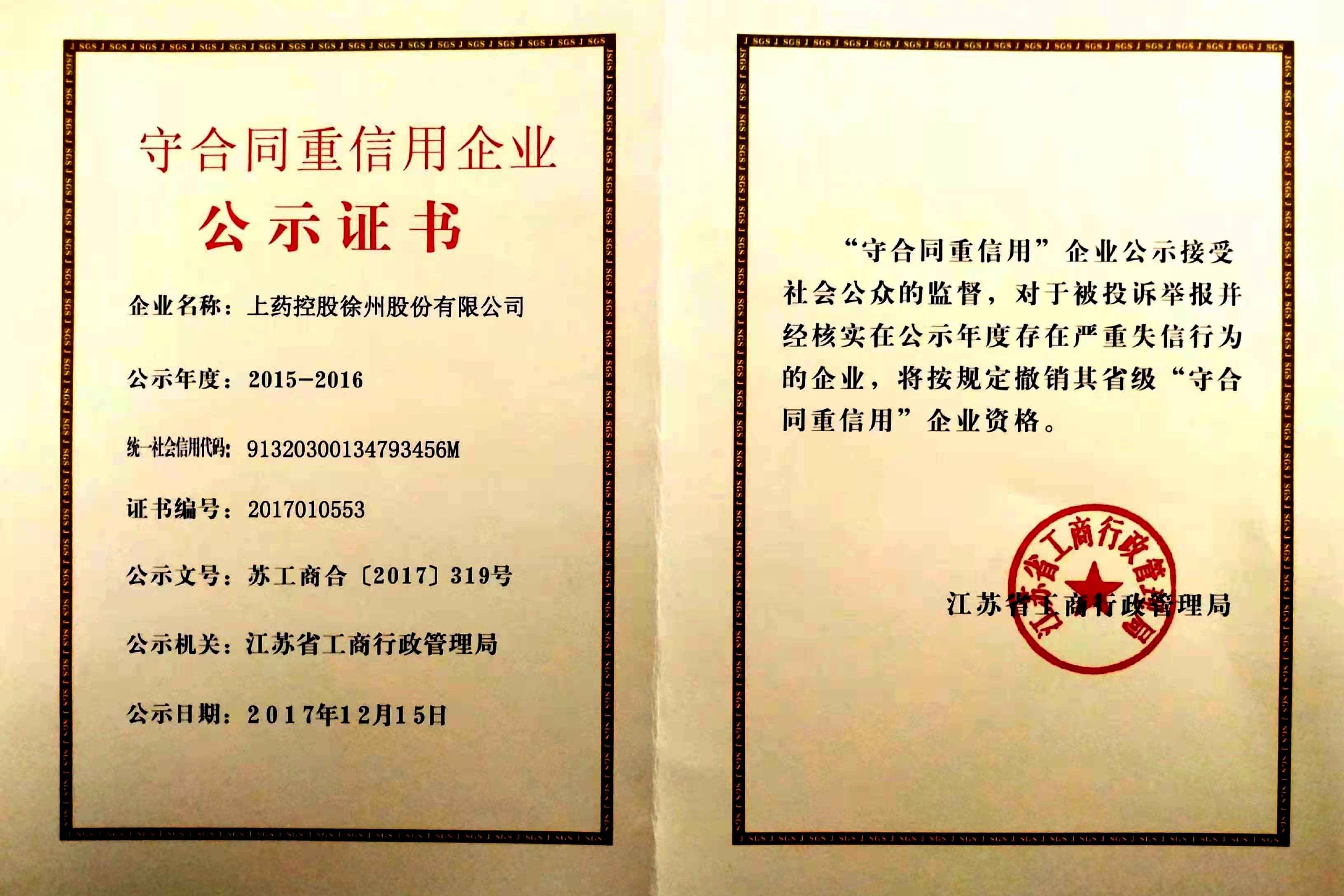 公司榮獲省級守重企業(yè)和市級社保誠信A級單位稱號上藥控股徐州股份有限公司榮獲了江蘇省“守合同,重信用”企業(yè)、徐州市社會保險誠信等級A級單位兩項光榮稱號。了解詳情2018/1/24 18:42:41