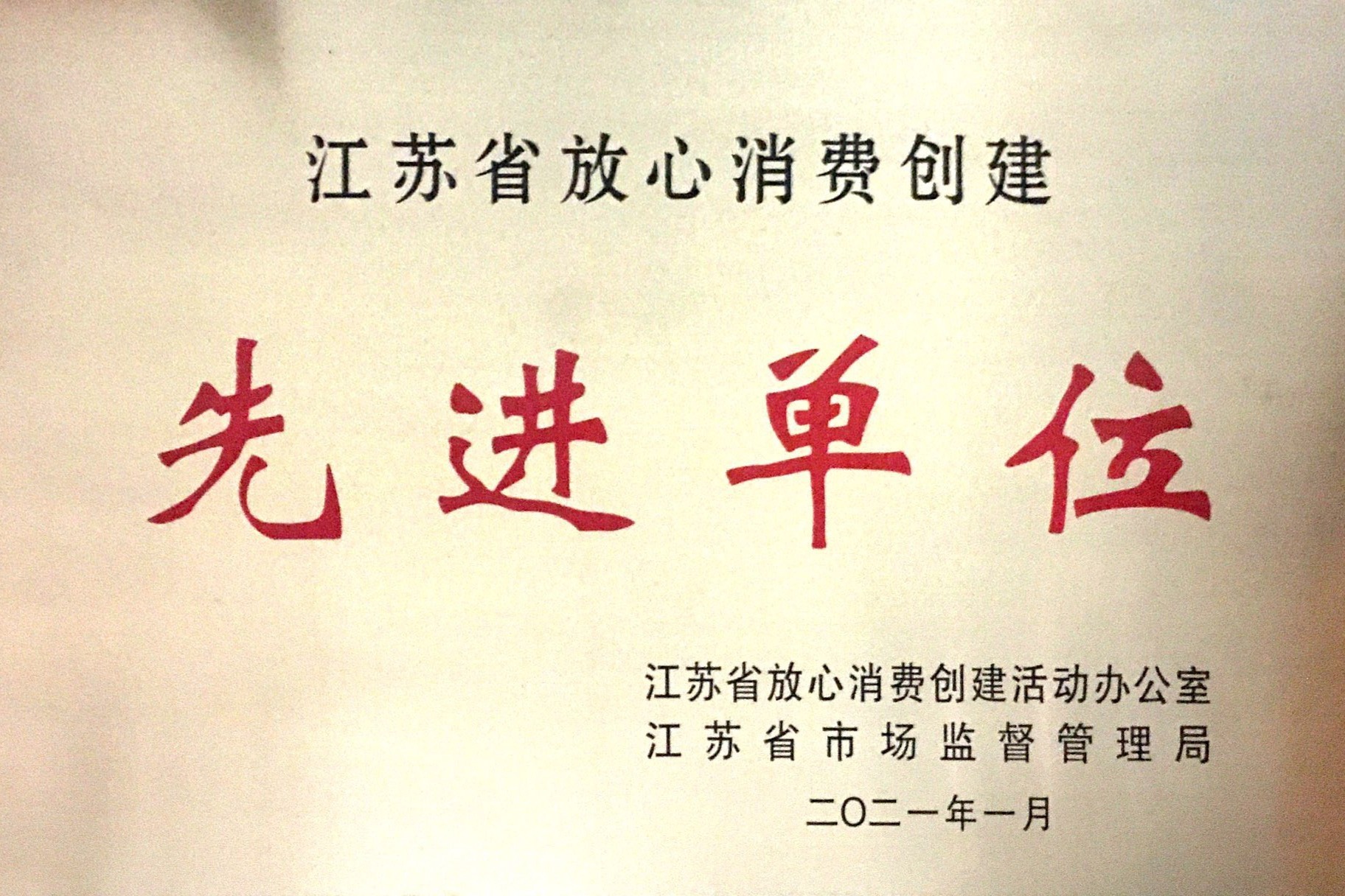 公司榮獲江蘇省放心消費創(chuàng)建先進單位2021年,公司榮獲江蘇省放心消費創(chuàng)建先進單位。了解詳情2021/3/31 9:41:39 -